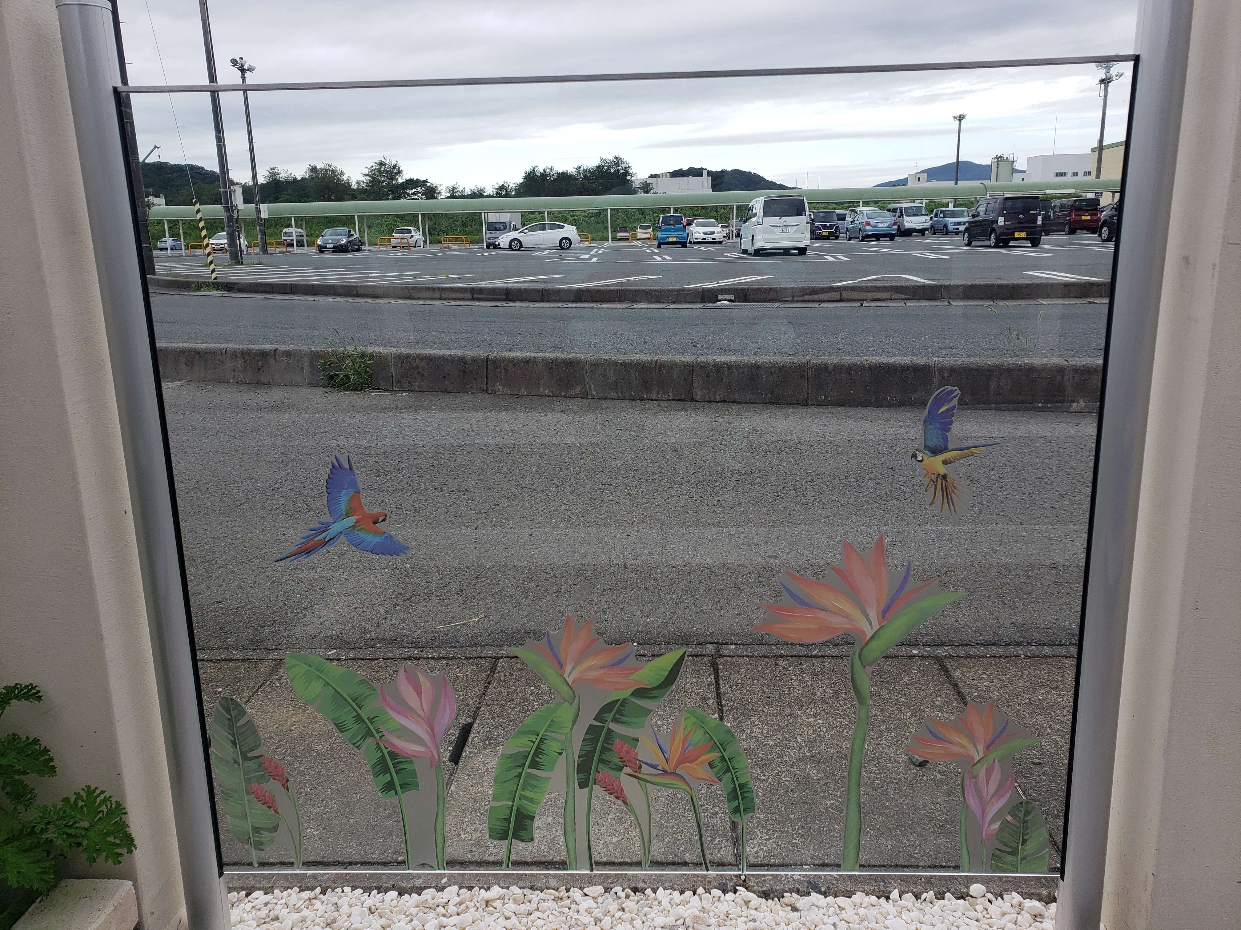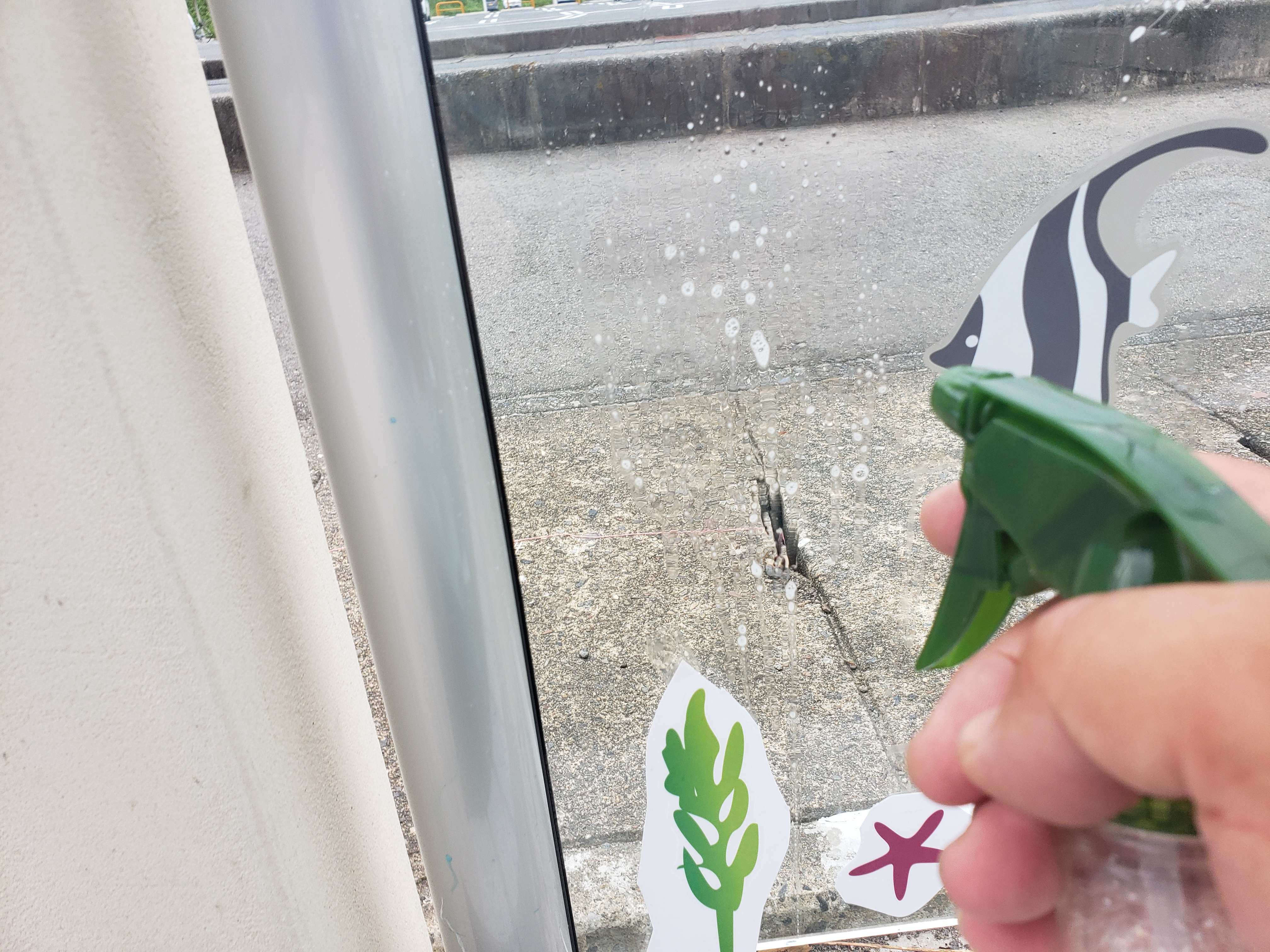 ガラスですので、車両ステッカーの用に洗剤入りの水を吹きかけております。